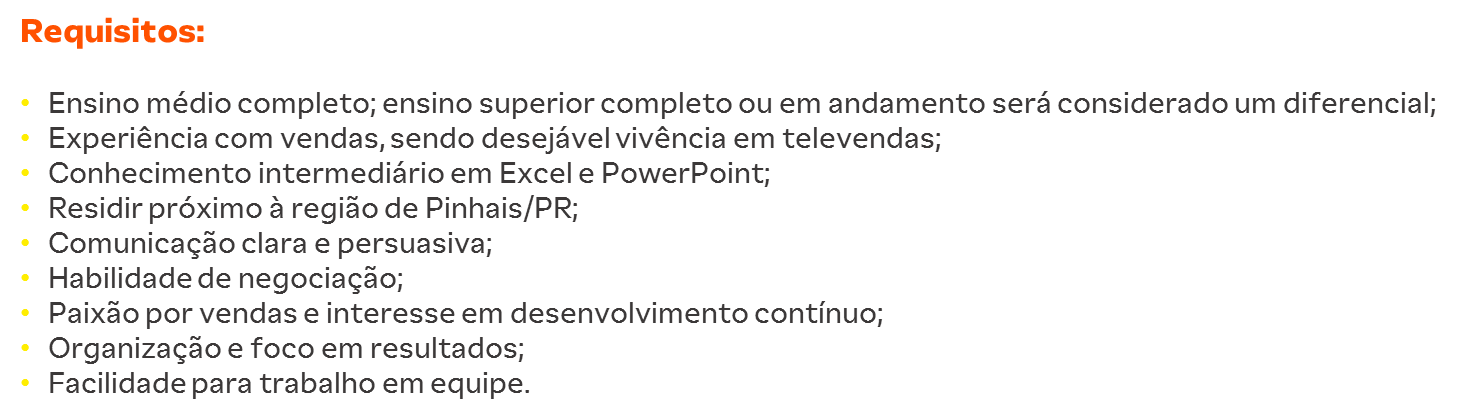 Vendedor Interno JR - Televendas - Pinhais/PR