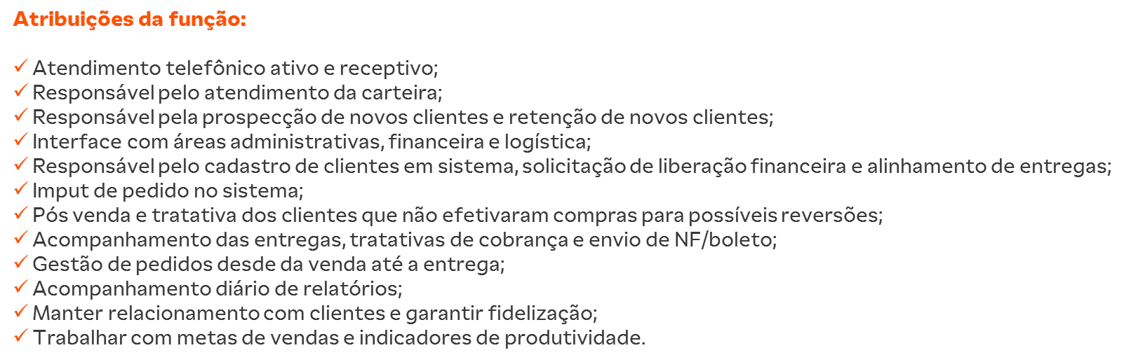 Descrição da vaga